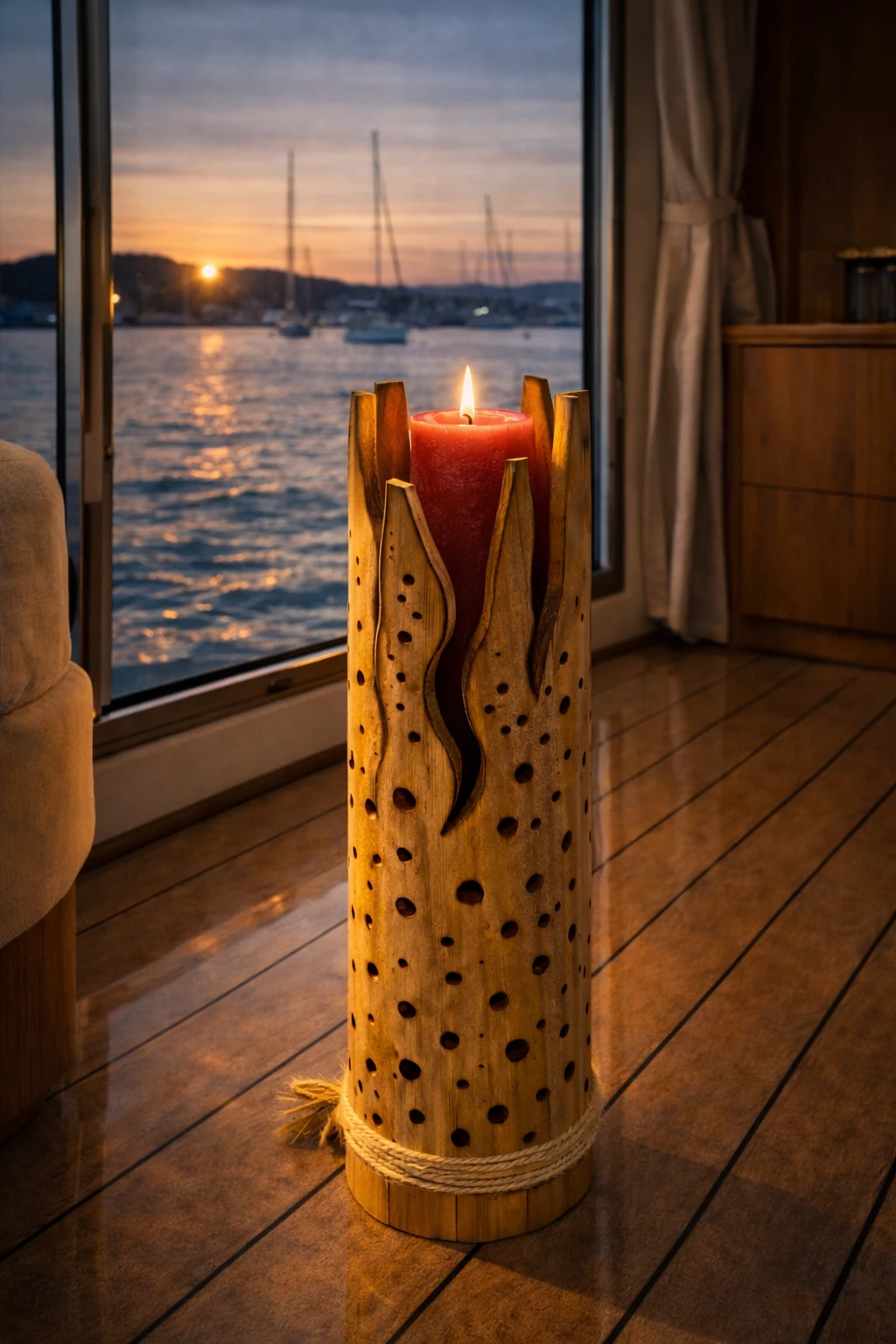 From yacht paneling and designer lamps to captain’s pipes and inlaid wall accents — every item is handmade, never mass-produced, with deep respect for the material and the ocean. We collaborate with private clients and interior designers, offering end-to-end service: concept, design, crafting, and installation.